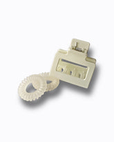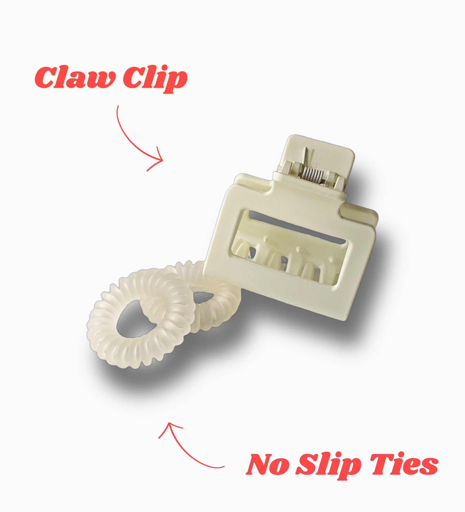 A claw clip to keep your halo in place while you wrap your hair & two no slip ties to secure your ends without having to tie your hair tight!